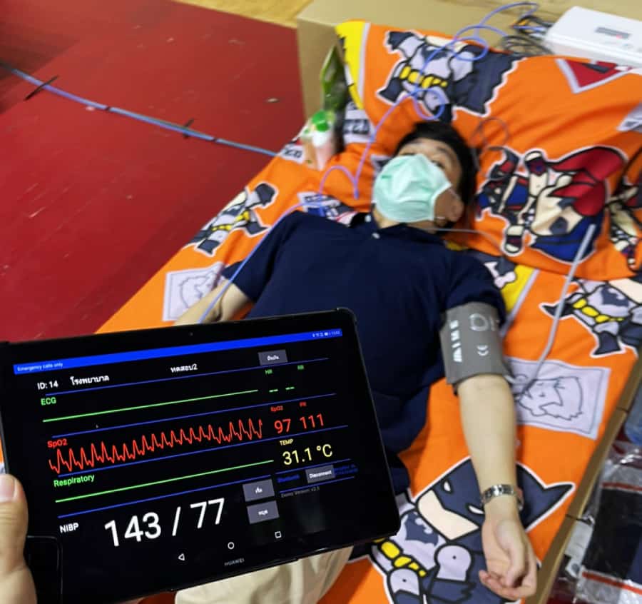 อีกหนึ่งผลงานการใช้ประโยชน์ของเทคโนโลยีเอไอในทางการแพทย์ เพื่อกู้วิกฤตโควิด-19 อย่าง “Cloud Design วัดสัญญาณชีพ” ครั้งแรกของไทย ตรวจวัดสัญญาณชีพและติดตามอาการผู้ป่วยได้แบบใกล้ชิดโดย ‘ไร้การสัมผัส’ (Touchless) ผ่านการสวมอุปกรณ์ปลอกแขน เพื่อทำหน้าที่ตรวจสัญญาณชีพและแสดงผล 6 ค่าสำคัญของผู้ป่วย ประกอบด้วย คลื่นไฟฟ้าหัวใจ อัตราการหายใจ อัตราการเต้นของหัวใจ ค่าออกซิเจนในเลือด อุณหภูมิ และค่าความดันโลหิต โดยที่ระบบเอไอ จะทำหน้าที่แสดงผลแบบเรียลไทม์ (Real Time) ไปยังมอนิเตอร์ส่วนกลาง เพื่อให้ทีมแพทย์สามารถวิเคราะห์ผล และแนวทางการรักษาได้ทันท่วงที ผ่านการสวมปลอกแขนให้ผู้ป่วยตั้งแต่ครั้งแรก ทั้งนี้ เอไอดังกล่าว ได้นำร่องทดสอบประสิทธิภาพเป็นที่เรียบร้อยแล้ว ณ โรงพยาบาลสนาม อาคารนิมิบุตร โดยเป็นผลงานวิจัยและพัฒนาโดย ดร.วิบูลย์ ปิยวัฒนเมธา อาจารย์ประจำภาควิชาวิศวกรรมชีวการแพทย์ คณะวิศวกรรมศาสตร์ สจล.