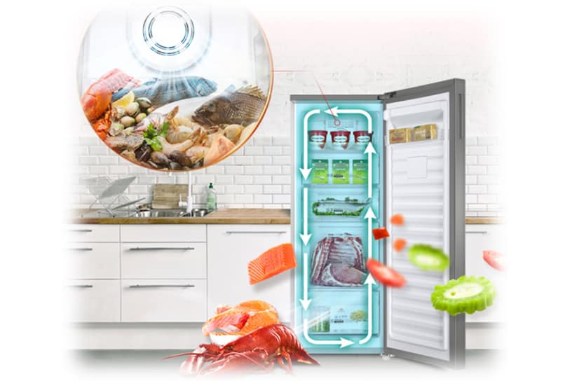 สำหรับช่องแช่แบ่งเป็นสัดส่วนแยกลิ้นชักใส สะดวกต่อการใช้งาน พร้อมหลอดไฟส่องสว่าง LED ประหยัดพลังงาน พร้อมควบคุมอุณหภูมิ Smart Digital Control ผ่านจอ LED สามารถควบคุมอุณหภูมิได้อย่างแม่นยำ นอกจากนี้อุณหภูมิภายในตู้ยังสม่ำเสมอด้วยระบบลมหมุนเวียน 3D ไม่เกิดเกล็ดน้ำแข็ง พร้อมภายในตู้มีระบบ Anti-Bacteria ช่วยรักษาคุณภาพและความสดของอาหาร ในราคา 12,990 บาท
