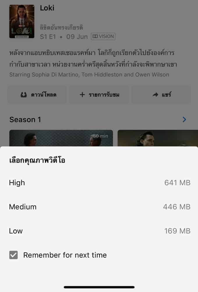 คอนเทนต์ต่างๆ สำหรับรับชมบนอุปกรณ์ ยังสามารถดาวน์โหลดเก็บเอาไว้เพื่อรับชมอย่างต่อเนื่องโดยไม่ต้องสตรีมตลอดเวลา โดยเลือกระดับคุณภาพความคมชัดได้ ถ้าเอาสูงสุดก็จะมีขนาดค่อนข้างใหญ่ แต่ไม่ใช่ปัญหาถ้าคุณใช้ AIS 5G นอกจากเวลาดูสตรีมจะไหลลื่นไม่มีกระตุก ยังสามารถโหลดคอนเทนต์มาเก็บไว้ในเครื่องในเวลารวดเร็ว