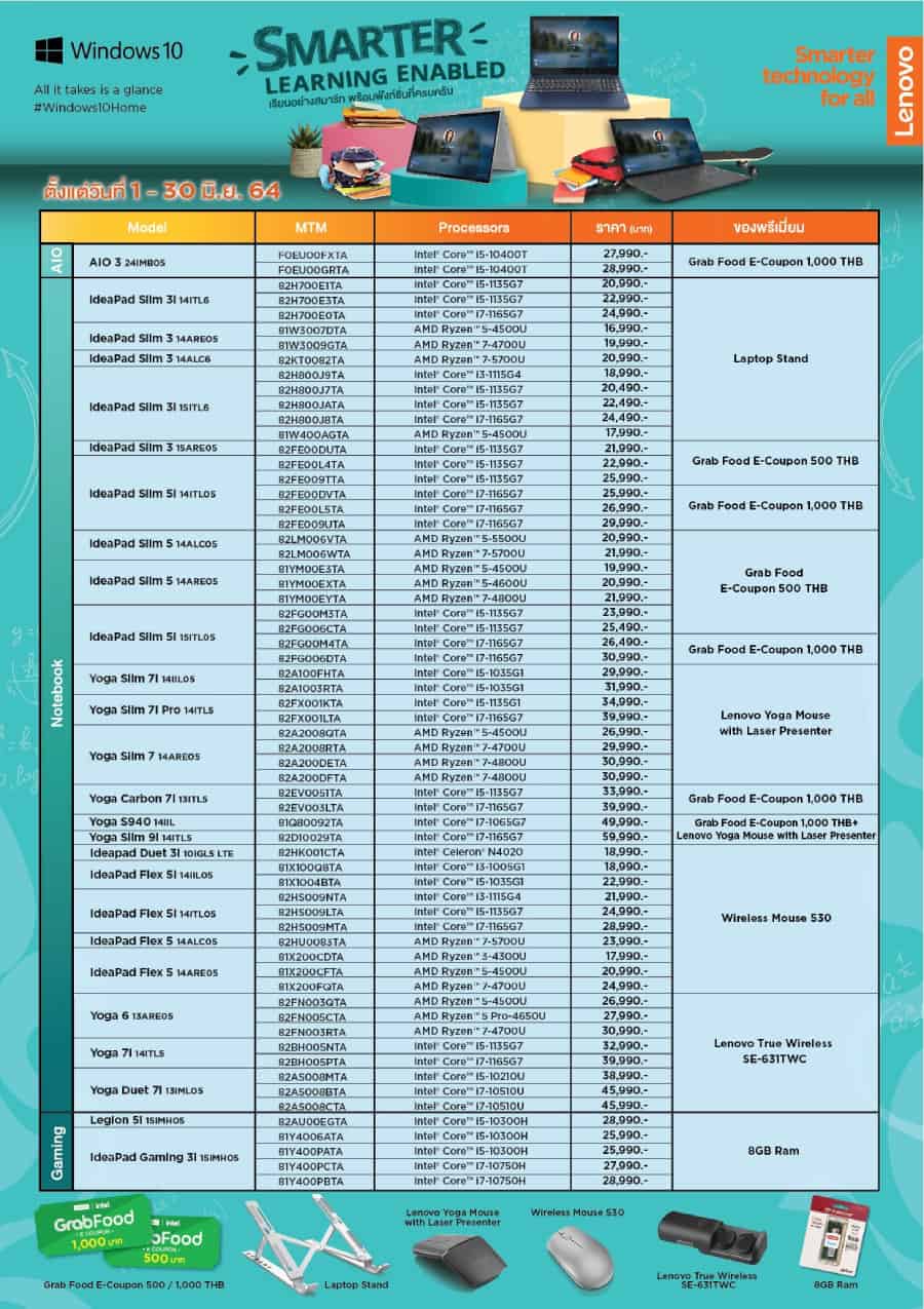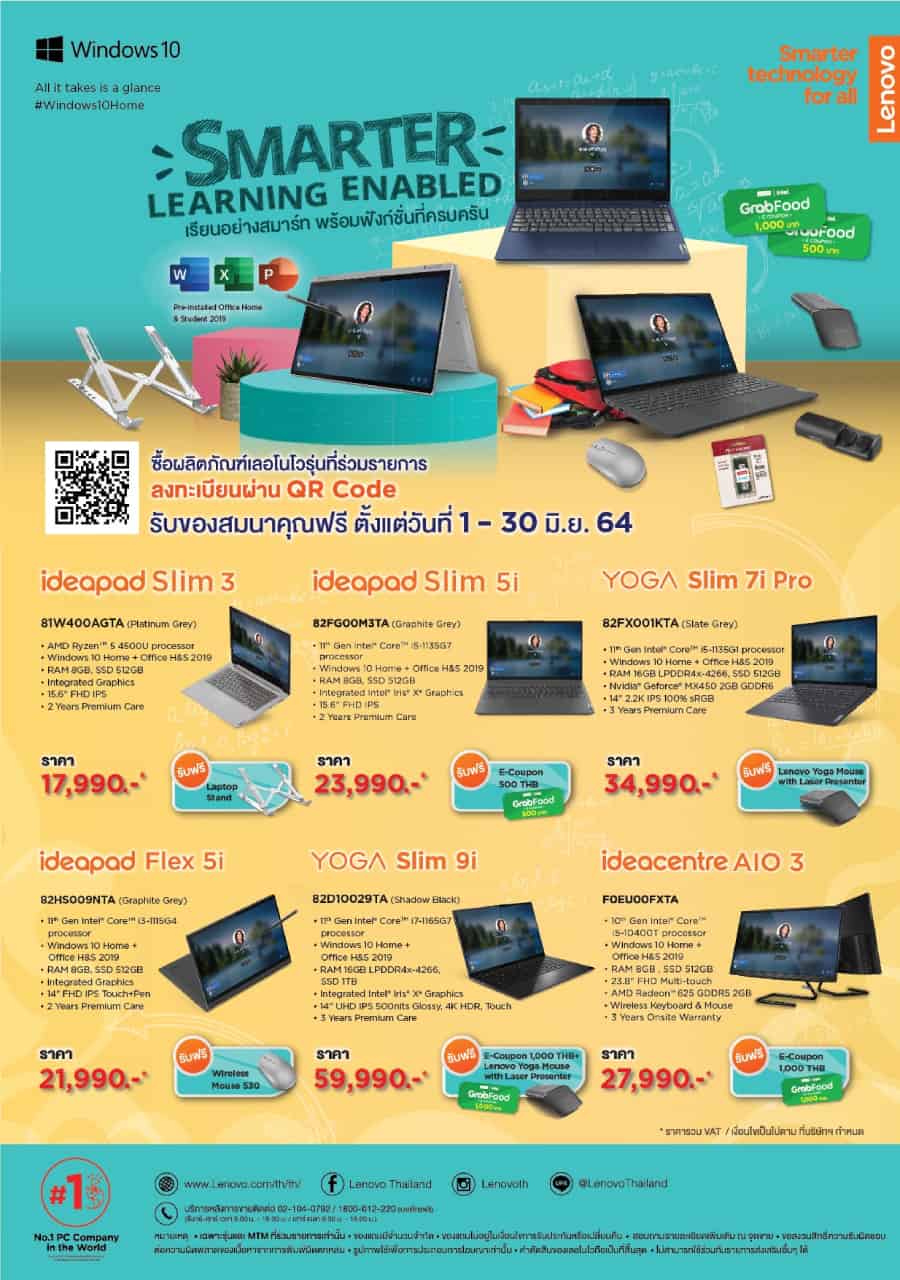 Lenovo เอาใจ เรียนออนไลน์ ถ้ากำลังมองหาคอมพิวเตอร์ทั้งสำหรับการเรียน และการทำงาน กับ 3 ไลน์ผลิตภัณฑ์ อาทิ Lenovo IdeaPad, Lenovo IdeaCentre และ Lenovo Yoga ยังมีของสมนาคุณมากมาย รวมไปถึงคูปองทานอาหารจาก Grab Food สูงสุดถึง 1,000 บาท