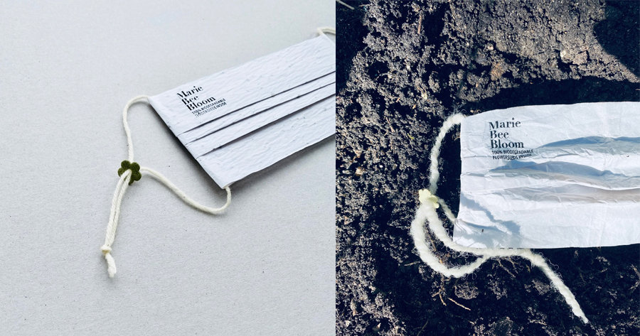 Marie Bee Bloom แบรนด์สัญชาติดัตช์ ได้ฝังเมล็ดพันธุ์ดอกไม้ลงใน หน้ากากอนามัย แบบใช้ครั้งเดียวทิ้ง ที่ทำจากกระดาษสา เพื่อลดมลภาวะจากขยะพลาสติกและให้เมล็ดพันธุ์กลับสู่ธรรมชาติเมื่อทิ้งหน้ากาก