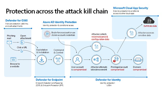 เครื่องมือทั้ง 4 ตัวที่กล่าวมานี้ จัดอยู่ในชุดเครื่องมือตรวจจับและป้องกันภัยคุกคามสำหรับองค์กรที่เรียกรวมๆ ว่า “Microsoft 365 Defender” ซึ่งสามารถทำงานสอดประสานกันเป็นหนึ่งเดียว ใช้ข้อมูลการแจ้งเตือนภัยคุกคาม ข้อมูลการยืนยันตัวตนและอุปกรณ์การใช้งานของฝั่ง user ร่วมกัน พร้อมรับมือกับสถานการณ์ได้ทั้งก่อนและหลังการโจมตี ไม่ว่าจะเป็นการป้องกัน ตรวจจับ สืบหา และตอบสนองการคุกคามในรูปแบบต่างๆ