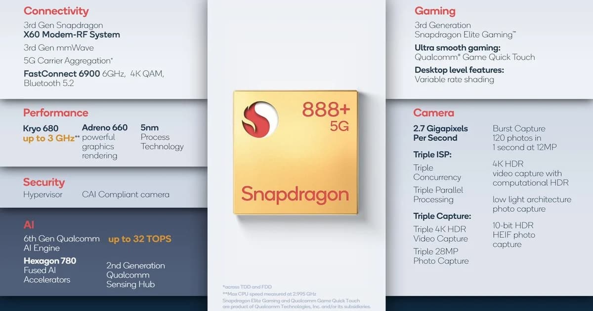 ล่าสุด Qualcomm เปิดตัวชิปประมวลผลตัวใหม่อย่าง Snapdragon 888+ 5G อย่างเป็นทางการแล้ว ในงาน MWC2021 โดยคาดว่าจะนำมาใช้กับสมาร์ทโฟนที่วางจำหน่ายในช่วงครึ่งปีหลังของปี 2021