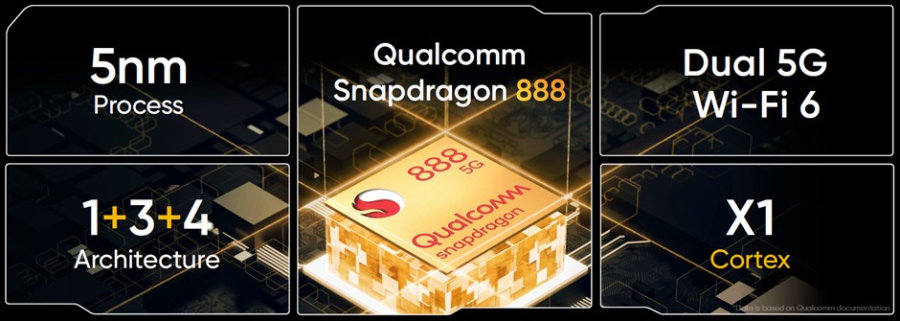 ด้วยเทคโนโลยีการประมวลผลขั้นสูงสุดบนชิปเซ็ต Qualcomm Snapdragon 888 ขนาด 5nm ได้ปรับปรุงประสิทธิภาพของ realme GT 5G และพลังการประมวลผล AI เมื่อรวมกับคอร์ Cortex-X1 ที่แข็งแกร่งและใหญ่ขึ้นและคอร์ A78 ประสิทธิภาพสูงรุ่นใหม่สามคอร์ ประสิทธิภาพของ CPU ของโทรศัพท์ก็เพิ่มขึ้น 20% และการใช้พลังงานลดลง 50% เมื่อเทียบกับรุ่นก่อนหน้า