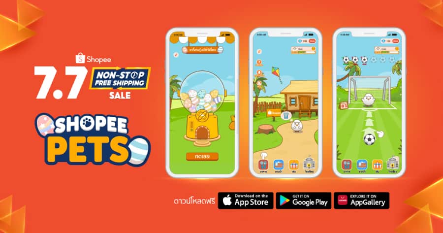 Shopee 7.7 Non-Stop Free Shipping Sale แคมเปญที่จะส่งมอบความสุขให้นักช้อปชาวไทยได้เพลิดเพลินไปกับสินค้าที่มาพร้อมโปรโมชั่นส่งฟรี ขั้นต่ำ 0 บาท สินค้าราคาแฟลชเซลล์เริ่มต้น 1 บาท โค้ดรับเงินคืน 20% พร้อมพบกับการแกะกล่องเกมน้องใหม่ล่าสุด “Shopee Pets”