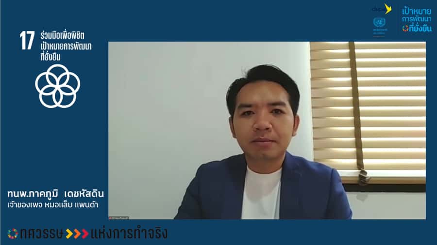 สหประชาชาติ ประเทศไทย (UN Thailand) ร่วมกับสำนักงานส่งเสริมเศรษฐกิจดิจิทัล (depa) เปิดตัวแคมเปญ Decade of Action, Decade of Innovation ทศวรรษแห่งการลงมือทำ ทศวรรษแห่งนวัตกรรม เพื่อก้าวใหม่สู่การพัฒนาที่ยั่งยืน โดยไม่ทิ้งใครไว้ข้างหลัง เพื่อส่งเสริมการใช้โซลูชั่นเทคโนโลยีและนวัตกรรมเพื่อให้บรรลุเป้าหมายการพัฒนาที่ยั่งยืน (SDGs) ที่มีความสำคัญต่อการพัฒนาของโลกในอนาคต ในช่วงสนทนา กลุ่มอินฟลูเอ็นเซอร์ได้ร่วมแบ่งปันมุมมองต่อเป้าหมายการพัฒนาที่ยั่งยืน ประกอบด้วย ทนพ.ภาคภูมิ เดชหัสดิน เจ้าของเพจ หมอแล็บ แพนด้า ดิจิทัลมีเดียสร้างความเข้าใจ และความร่วมมือฝ่าวิกฤติโควิด-19 คุณพริษฐ์ วัชรสินธุ: เทคโนโลยีจะช่วยทำให้เด็กนักเรียนเข้าถึงการศึกษาที่มีคุณภาพ คุณริชชี่ อรเณศ ดีคาบาเลส และ คุณเบิ้ล ปทุมราช อาร์สยาม ตัวแทนคนบันเทิงรุ่นใหม่เพื่อชุมชน สร้างความมั่นคงทางรายได้ด้วยการเกษตร