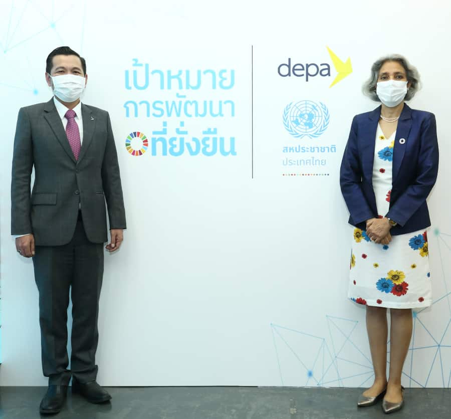 สหประชาชาติ ประเทศไทย มีหน้าที่ในการสร้างความสำเร็จเพื่อบรรลุเป้าหมายการพัฒนาที่ยั่งยืน หรือ SDGs ซึ่งสอดคล้องกับแผนพัฒนาการเศรษฐกิจและสังคมแห่งชาติ ฉบับที่ 13 ที่ให้ความสำคัญในการเปลี่ยนผ่านประเทศสู่เศรษฐกิจสร้างคุณค่าอย่างยั่งยืน สหประชาชาติ ประเทศไทย ได้ร่วมมือกับ ดีป้า ในการรณรงค์แคมเปญ Decade of Action, Decade of Innovation ด้วยความเชื่อที่ว่าเทคโนโลยีดิจิทัลมีพลังในการลดความเหลื่อมล้ำ สามารถสร้างโซลูชั่นนวัตกรรมสำหรับการใช้ชีวิตสมัยใหม่ สร้างโอกาสให้กับประชาชนและองค์กรให้เติบโตในเศรษฐกิจดิจิทัล โดย ดีป้า จะแบ่งปันความรู้จากโครงการในประเทศไทยและข้อมูลจากผู้เชี่ยวชาญในมิติต่าง ๆ เช่น อีเลิร์นนิง เกษตรอิเล็กทรอนิกส์ และดิจิทัลทรานฟอร์เมชั่น สำหรับเอสเอ็มอี เพื่อสร้างความตระหนักในเป้าหมายระดับโลกและสร้างแรงบันดาลใจให้ผู้คนทุกสาขาอาชีพในการสร้างและมีส่วนร่วมแก้ไขความต้องการพัฒนาในอนาคตของโลก