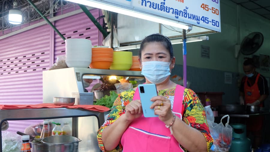 คุณบุญตา จรูญโรจน์ ณ อยุธยา (แม่ค้าร้านอาหาร) “ใช้ดีมากค่ะ ช่วงนี้มีนโยบายรัฐ เราก็จำเป็นต้องใช้สมาร์ทโฟนไว้ใช้แสกนโครงการต่างๆของรัฐบาล และที่สำคัญแบตเตอรี่ใช้ได้นานมากค่ะ ตั้งแต่เปิดร้านประมาณบ่ายสาม จนปิดร้านประมาณห้าทุ่มเที่ยงคืน แบตอึด ไม่ต้องชาร์จระหว่างการใช้งานเลยค่ะ และที่สำคัญราคาไม่แพงด้วย”
