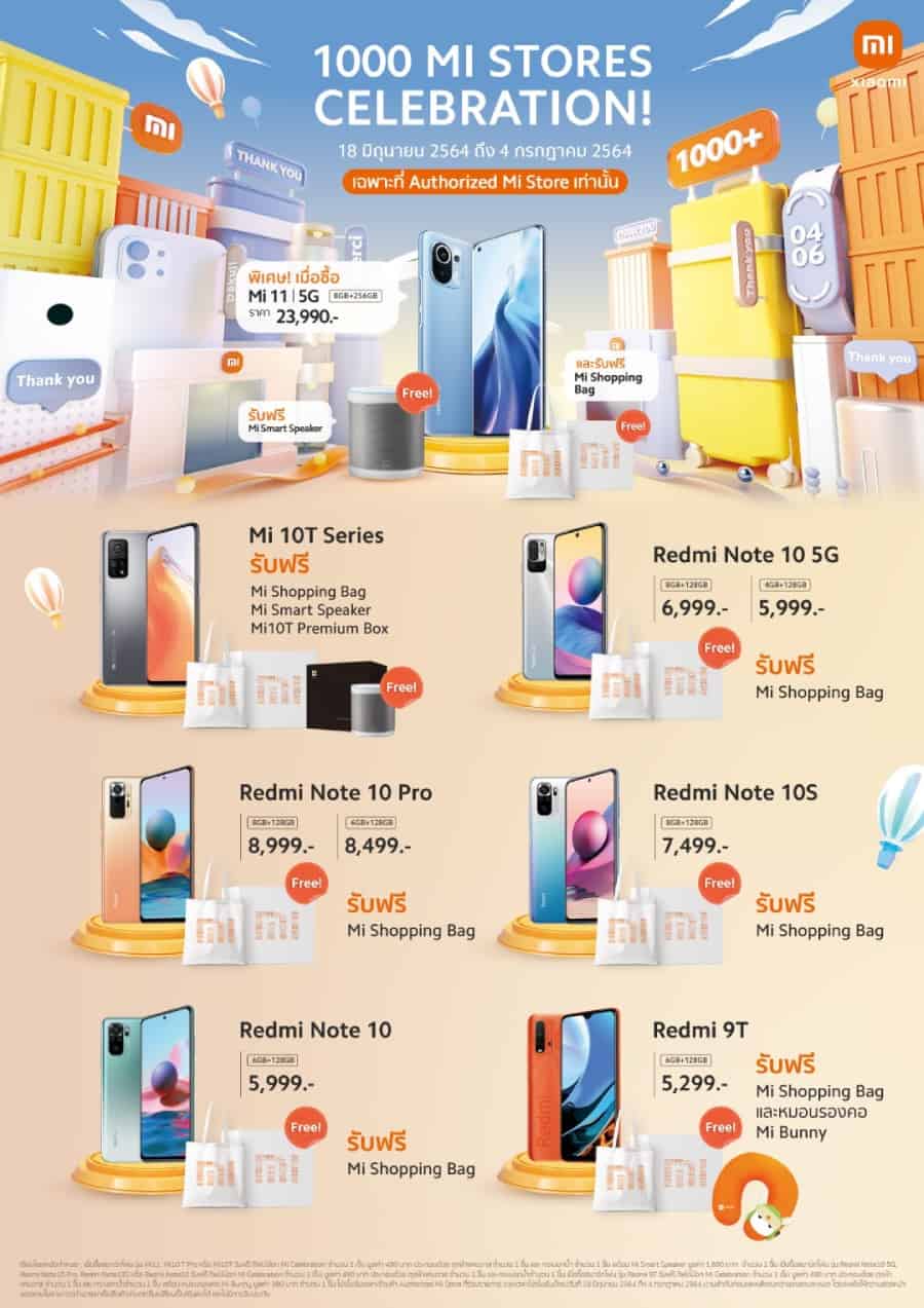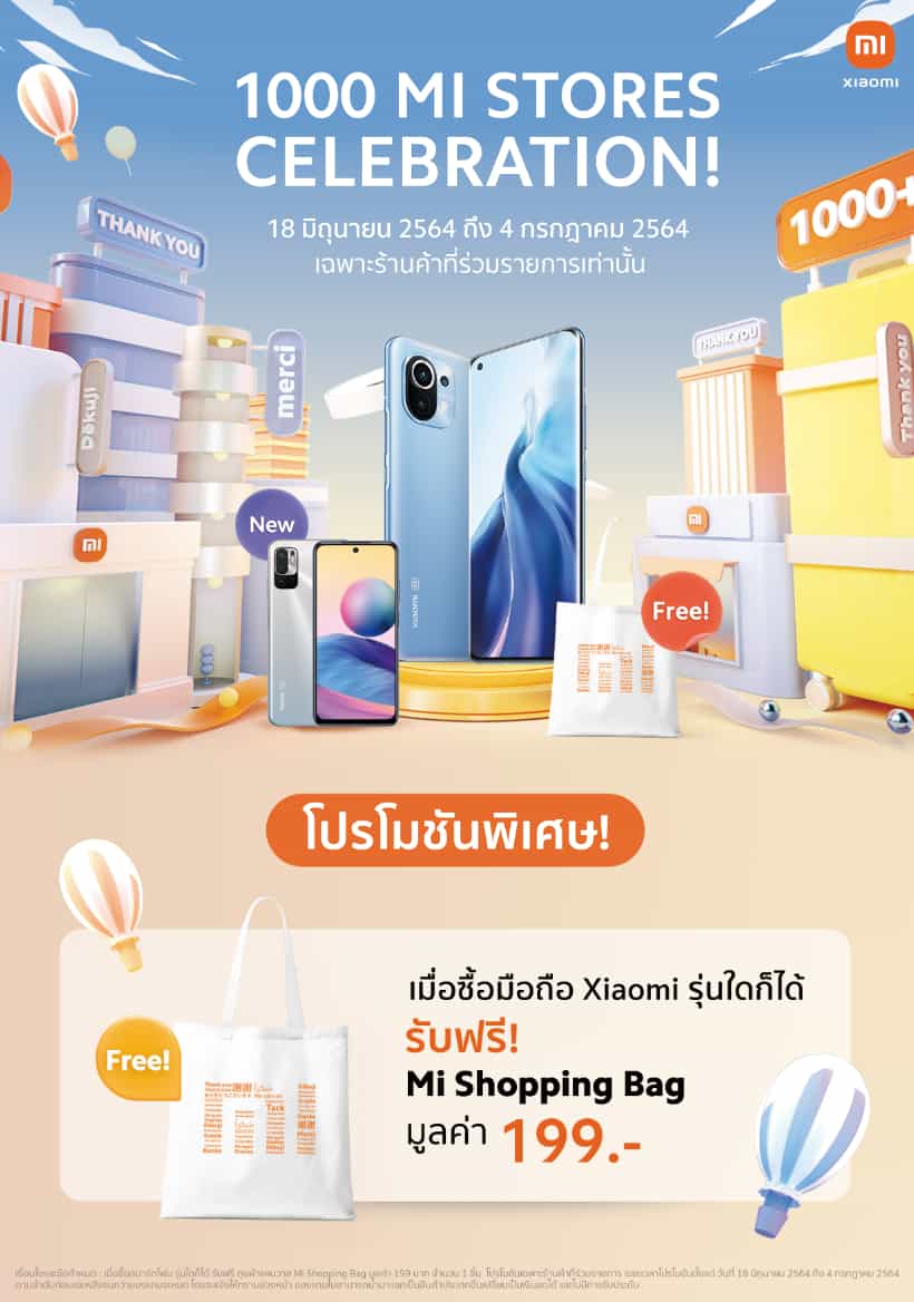 เมื่อซื้อสมาร์ทโฟนเสียวหมี่รุ่นใดก็ตามระหว่างวันที่ 18 มิถุนายน – 4 กรกฎาคม 2564 รับฟรี Mi Shopping Bag มูลค่า 199 บาท ที่ร้านค้าที่ร่วมรายการทั่วประเทศ