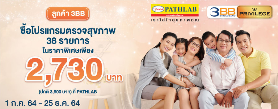 ศูนย์ตรวจเลือดเพื่อสุขภาพที่เชี่ยวชาญด้านการให้บริการตรวจสุขภาพจากเลือด โดยทีมงานผู้เชี่ยวชาญเฉพาะด้านที่มีประสบการณ์ด้านเทคนิคการแพทย์และพยาบาลวิชาชีพโดยตรง ด้วยเทคโนโลยีที่ทันสมัยเพื่อให้ได้ผลการตรวจที่ถูกต้องแม่นยำ ลูกค้า 3BB ซื้อโปรแกรมตรวจสุขภาพ 38 รายการ ในราคาพิเศษเพียง 2,730 บาท (ปกติ 3,900 บาท) รับสิทธิ์ได้ถึง 25 ธันวาคม 2564