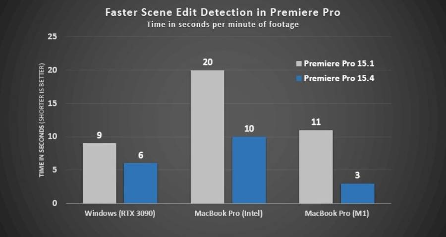 Adobe Premiere Pro ได้ทำการออกอัปเดตใหม่ เวอร์ชัน 15.4 เพื่อให้สามารถรองรับการใช้งานสำหรับชิป Silicon M1 ของ Apple ทั้งบน iMac ขนาด 24 นิ้ว, Mac mini, MacBook Air และ MacBook Pro รุ่น 13 นิ้ว แล้ว