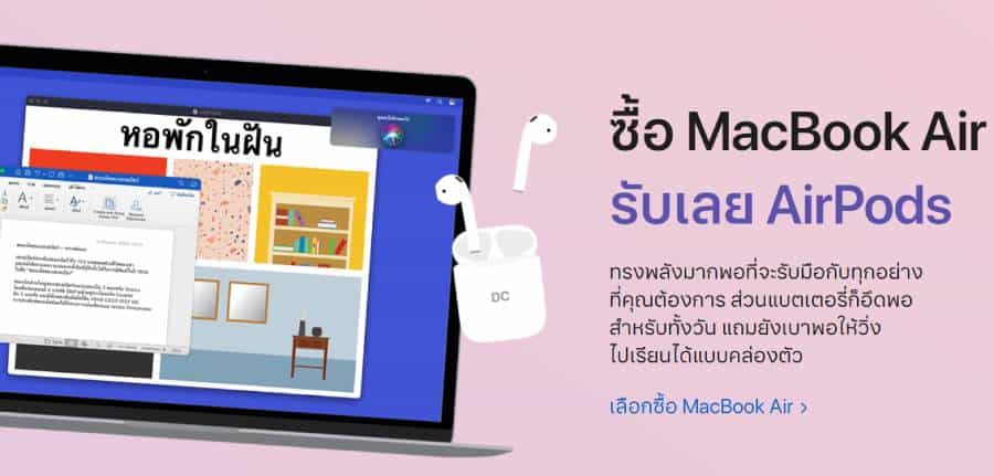 สำหรับข้อเสนอ Back to School ของ Apple ในครั้งนี้จะช่วยให้นักเรียนและนักศึกษาได้รับ AirPods ฟรีทันทีเมื่อซื้อ Mac และ iPad บางรุ่น โดยมีอุปกรณ์ต่าง ๆ ที่เข้าร่วมรายการดังนี้: