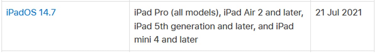 ระบบปฏิบัติการ iPadOS 14.7 นั้นออกมาเพื่อแก้ไขปัญหาดังนี้