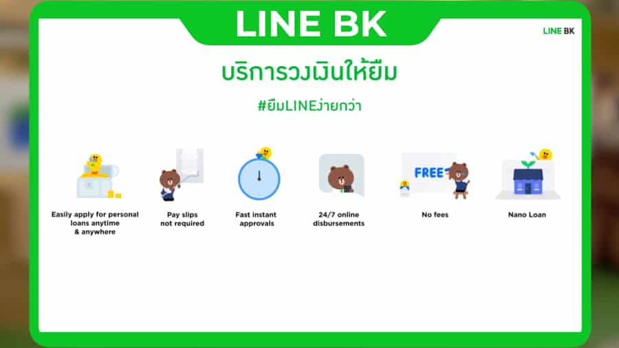 นายธนา โพธิกำจร ประธานเจ้าหน้าที่บริหาร บริษัท กสิกร ไลน์ จำกัด กล่าวว่า “ความร่วมมือครั้งนี้ถือเป็นความร่วมมือครั้งสำคัญเพื่อตอกย้ำแนวคิด “เรื่องเงินง่ายใน LINE คุณ” ของ LINE BK เอง โดยมีเป้าประสงค์หลักเพื่อช่วยให้ลูกค้าสามารถเข้าถึงแหล่งเงินทุนที่ง่ายและสะดวกขึ้นภายใต้สภาวะเศรษฐกิจและสถานการณ์ปัจจุบัน การขอสินเชื่อแบบดิจิทัลนี้จะมีขั้นตอนการกู้ยืมง่ายและเกณฑ์การอนุมัติจะผ่อนคลายกว่าเมื่อเทียบกับการให้กู้ยืมแบบเดิม เพียงลูกค้ามีรายได้ขั้นต่ำ 5,000 บาท ก็สามารถยื่นขอสินเชื่อได้แล้ว ช่วยเพิ่มโอกาสให้ลูกค้าได้เข้าถึงสินเชื่อในระบบ ไม่ต้องเสี่ยงกับการกู้สินเชื่อนอกระบบ”