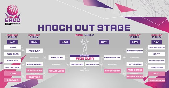 รอบชิงชนะเลิศเป็นการแข่งขันอันดุเดือดระหว่างทีม FaZe Clan กับ ทีม Manchester City Esports ด้วยระบบ BO5 JubJub ผู้เล่นจากทีม FaZe Clan โชว์ฟอร์มเข้มด้วยการเก็บ 2 แมตช์แรกไปได้ แต่ผู้เล่นของทีม Manchester City Esports อย่าง Daybreak ก็จุดประกายความหวังของทีมขึ้นมาด้วยการเอาชนะแมตช์ที่ 3 ไป ทีม FaZe Clan ต้องการชัยชนะอีกเพียงแมตช์เดียวเท่านั้นพวกเขาก็จะได้แชมป์รายการนี้ไปครอง สุดท้ายพวกเขาส่ง Michael04 ลงมาปิดเกมส์ในแมตช์ที่ 4 และเขาก็ไม่ทำให้ผิดหวังด้วยการคว้าชัยชนะแมตช์ที่ 3 ให้กับทีม ผลสรุปคือ FaZe ชนะไปด้วยสกอร์ 3-1 เกมส์และคว้าแชมป์ EACC Summer 2021 ไปครอง พร้อมกับเงินรางวัลใหญ่ 35,000 ดอลลาร์สหรัฐกลับบ้านไป