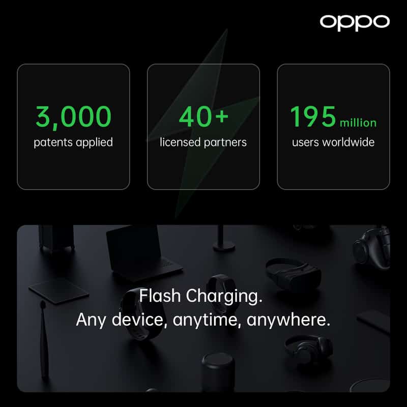 จากการเปิดตัว VOOC Flash Charge ในปี ค.ศ. 2014 ความปลอดภัย ประสิทธิภาพ และความสะดวกในการใช้งาน ยังคงเป็น 3 ปัจจัยหลัก อันเป็นส่วนสำคัญในการวิจัยและพัฒนาของ OPPO ในด้านเทคโนโลยีแบตเตอรี่และการชาร์จ โดยตั้งแต่วันที่ 30 มิถุนายน ค.ศ. 2021 OPPO ได้ยื่นขอจดสิทธิบัตรเทคโนโลยีการชาร์จอย่างรวดเร็วไปกว่า 3,000 รายการ และด้วยอุปกรณ์กว่า 30 ชนิดที่ใช้ในการรองรับเทคโนโลยี VOOC Flash Charge นั้น ทำให้ OPPO สามารถนำประสบการณ์การชาร์จที่รวดเร็ว สะดวก และปลอดภัยมาสู่ผู้คนกว่า 195 ล้านคนทั่วโลก