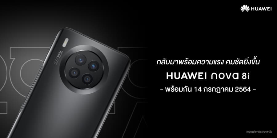 หัวเว่ย คอนซูมเมอร์ บิสสิเนส กรุ๊ป (ประเทศไทย) เตรียมเปิดตัวผลิตภัณฑ์ใหม่เอาใจคอแกดเจ็ตที่รักความสมาร์ทตามคอนเซ็ปต์ “ชีวิตเอไอไร้รอยต่อ” หรือ Seamless Smart AI life นำโดยหูฟังไร้สาย HUAWEI FreeBuds 4 ที่มาพร้อมดีไซน์และเทคโนโลยีตอบโจทย์ยิ่งกว่าเดิมHUAWEI Watch 3 Series สมาร์ทวอทช์สุดหรูที่จะมายกระดับทั้งการดูแลสุขภาพ-ชีวิต-การงานอย่างรอบด้าน ตามมาด้วย HUAWEI nova 8i สมาร์ทโฟน 4 กล้อง ความละเอียดสูงสุด 64 ล้านพิกเซล ถ่ายรูปได้สวยไม่ง้อใคร ถูกใจสายแฟฯ ยืนยันพบกันแน่ในวันที่ 14 กรกฎาคม 2564 เวลา 14.00 น. รับชมไลฟ์สตรีมงานเปิดตัวสดๆ บนเฟซบุ๊กแฟนเพจ HUAWEI Mobile TH ให้ทุกคนได้ลุ้นราคาวางจำหน่ายในประเทศไทย พร้อมเผยโปรโมชันและของสมนาคุณสุดพิเศษมากมาย