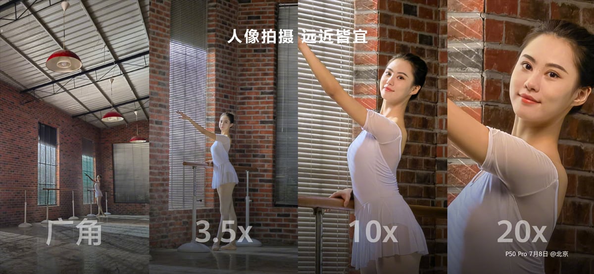 ความน่าสนใจอยู่ที่ Huawei P50 เป็นสมาร์ทโฟนที่ไม่ใช่รุ่น Pro รุ่นแรก ที่มาพร้อมกล้อง periscope โดยที่กล้องมีความยาวโฟกัส 125 มิลลิเมตร (ซูมแบบดิจิทัลได้ 80 เท่า และซูมออปติคอลได้ 5 เท่า) แต่จะมาพร้อมเซ็นเซอร์ที่มีความละเอียดเพียง 12 ล้านพิกเซล รูรับแสง f/3.4 และยังคงมาพร้อมระบบป้องกันภาพสั่น OIS