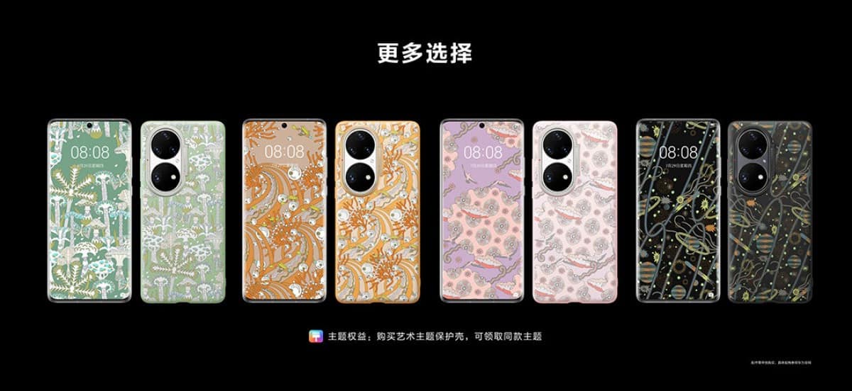 Huawei P50 มีให้เลือกทั้งหมด 3 สี ส่วน P50 Pro มีให้เลือกทั้งหมด 5 สี ที่น่าสนใจอีก คือ มีเคสมือถือให้เลือก โดยมีลายวอลเปเปอร์ที่เอาไว้จับคู่ใช้งานกับเคสมือถือ