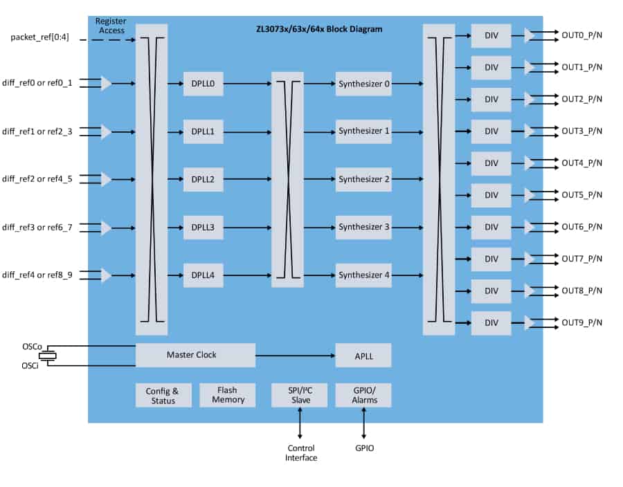 แพลตฟอร์มซอฟต์แวร์สำหรับการปรับเทียบเครือข่ายของไมโครชิพจะประกอบไปด้วยอัลกอริธึมที่มีประสิทธิภาพสูง ZLS30730 ควบคู่ไปกับเอ็นจิ้นโปรโตคอล ZLS30390 IEEE 1588-2008 ทั้งสององค์ประกอบจะถูกประยุกต์ใช้อย่างมากในเครือข่าย 3G 4G และ 5G ซึ่งมาพร้อมกับความสามารถในการจับเวลาที่แม่นยำ นอกจากนี้ แพลตฟอร์มการปรับเทียบเครือข่าย ZL3073x/63x/64x ของไมโครชิพได้ผสานเข้ากับอุปกรณ์ออสซิลเลเตอร์ (Oscillator) 5G ที่มีความแม่นยำสูงของบริษัท ตัวอย่างเช่น OX-601 Oven Controlled Crystal Oscillator (OCXO) เพื่อมอบโซลูชันที่ครอบคลุมการใช้งานของระบบทั้งหมดแก่ผู้ให้บริการเครือข่าย 5G