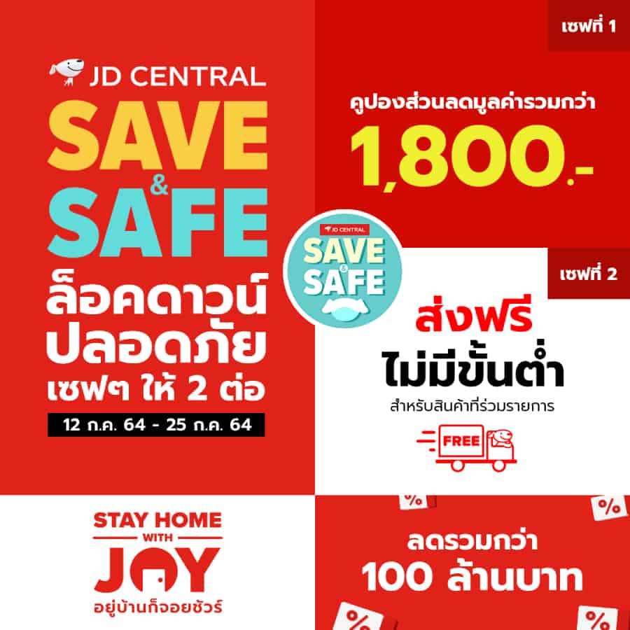 JD Central ทุ่มงบกว่า 100 ล้านบาท ส่งแคมเปญ ล็อคดาวน์ปลอดภัย เซฟๆ ให้ 2 ต่อ ร่วมลดภาระค่าใช้จ่ายคนไทยในช่วงล็อคดาวน์ พร้อมมาตรการพิเศษช่วยร้านค้า สนับสนุนให้ทุกคนช้อปออนไลน์จากบ้าน ปลอดภัยจากจากโควิด-19