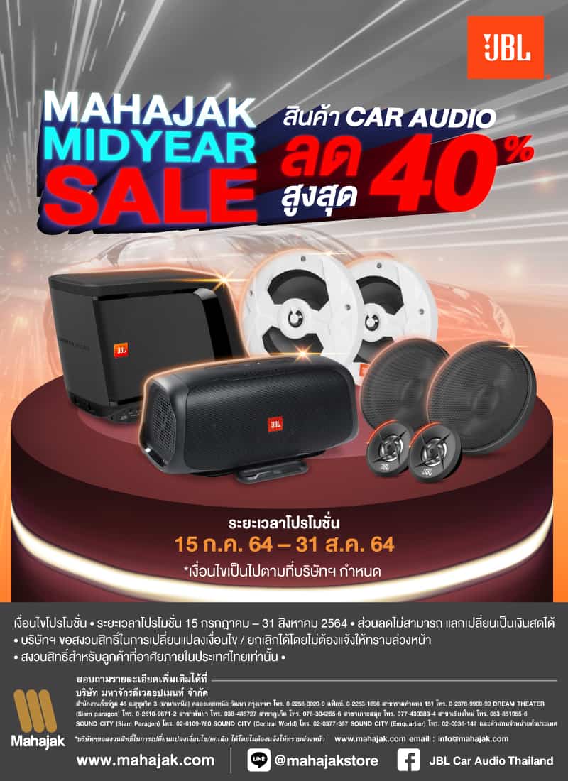 MAHAJAK MIDYEAR SALES 2021 มหกรรมลดราคากลางปีสูงสุด 40% ลดแรงแซงทางโค้งกับสินค้า JBL CAR AUDIO ในราคาพิเศษสุดคุ้ม!