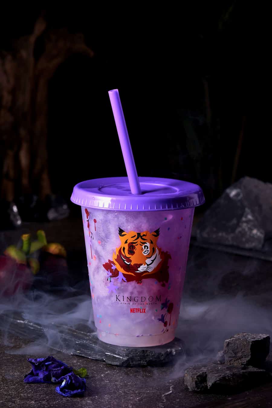 “เสือพ่นไฟคืนชีพ” เป็นเมนูใหม่สุดเอ็กซ์คลูซีฟจากความร่วมมือของ Netflix และ Fire Tiger โดยเป็นเครื่องดื่มสีม่วงสดใส สูตรที่ตั้งใจรังสรรค์ขึ้นโดยเฉพาะ โดยได้รับแรงบันดาลใจจากสมุนไพรคืนชีพในซีรีส์ ผีดิบคลั่ง บัลลังก์เดือด (Kingdom) ซึ่งเจ้าสมุนไพรดอกสีม่วงนี้สามารถชุบชีวิตคนตายให้ฟื้นคืน ขณะที่ “เสือพ่นไฟคืนชีพ” ก็คงคอนเซ็ปต์การคืนชีพด้วยความสดชื่นของ มังคุด อัญชัน เเละโซดาที่เป็นส่วนผสมหลัก พร้อมไข่มุกป๊อปรสลิ้นจี่และบุกแถมกิมมิกสุดเซอร์ไพรส์กับแก้วเปลี่ยนสี Limited Edition ที่มีจำนวนจำกัด โดยเป็นแก้วแบบ reusable cup ซึ่งสามารถนำกลับมาใช้ซ้ำได้ ซึ่งสีของแก้วจะค่อยๆ เปลี่ยนไปตามอุณหภูมิ ขอบอกว่าสัมผัสความเซอร์ไพรส์แบบนี้กันได้เฉพาะกับเมนูพิเศษนี้เท่านั้น