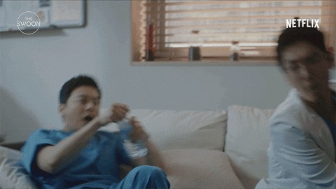 และในตอนที่จุนวานคว้าหมอนมาฟาดเขานี่เอง อิกจุนก็หาจังหวะกินขนมเข้าไปอีกชิ้นจนได้ในจังหวะที่ฮาสุดๆ แล้วทั้งสองก็ลงท้ายด้วยการจั๊กจี้กัน การที่ทั้งสองทะเลาะกันเหมือนเด็กๆ เช่นนี้ทำให้เรายิ่งขำไปใหญ่เพราะมันช่างสวนทางกับตอนที่พวกเขาทำหน้าที่เป็นหมออย่างจริงจัง