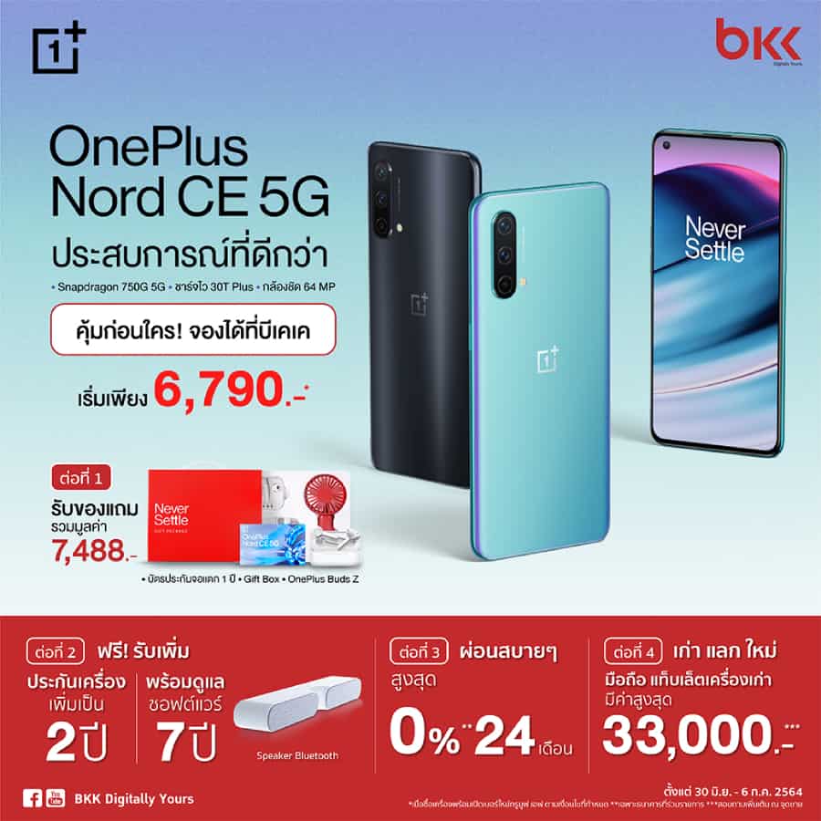 วันพลัส เปิดตัวสมาร์ทโฟน OnePlus Nord CE 5G ‘ประสบการณ์ที่ดีกว่า’ โปรโมชัน ในราคาเริ่มต้นเพียง 5990 บาท! พรีออเดอร์ได้แล้ววันนี้ – 6 กรกฎาคม นี้เท่านั้น
