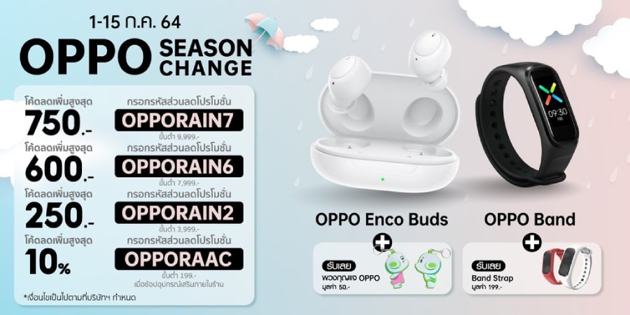 - เมื่อซื้อ OPPO Band คู่กับ OPPO Enco Buds รับส่วนลดของ OPPO Enco Buds ทันที! เพียง 649 บาท จากปกติ 999 บาท