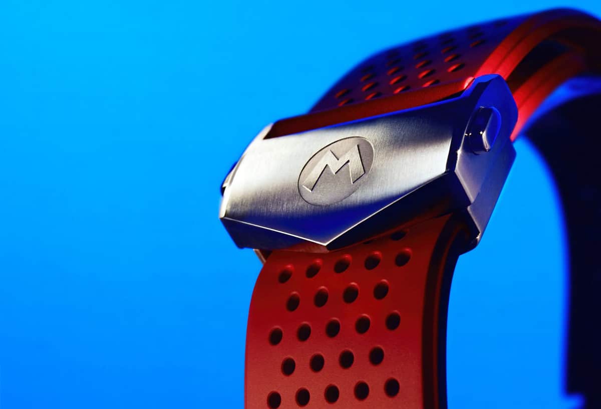 หน้าปัดของสมาร์ทวอชรุ่นนี้จะให้เลือก 2 สี คือ สีแดง และ สีน้ำเงิน อันเป็นสีเอกลักษณ์ของ Super Mario