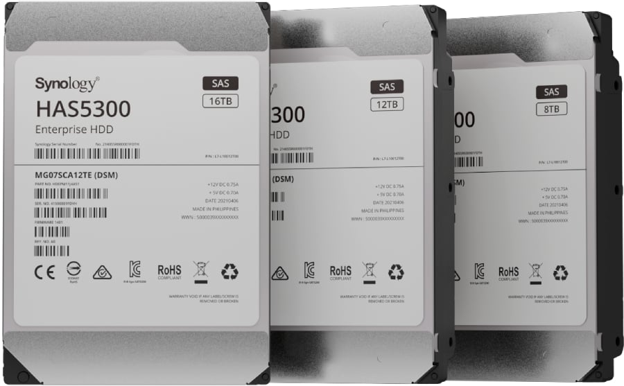 วางจำหน่ายในรุ่น 16TB, 12TB และ 8TB ไดรฟ์ HAS5300 เป็นฮาร์ดไดรฟ์ระดับองค์กรของ Synology ที่รุ่นล่าสุด หลังจากการเปิดตัวไดรฟ์ SATA รุ่น ซีรี่ส์ HAT5300 ในเดือนมกราคม ไดรฟ์เหล่านี้เป็นคู่หูที่สมบูรณ์แบบของโซลูชันพื้นที่จัดเก็บข้อมูลซีรี่ส์ SA หรือ UC ที่มีประสิทธิภาพสูงและปรับขยายได้มากของ Synology