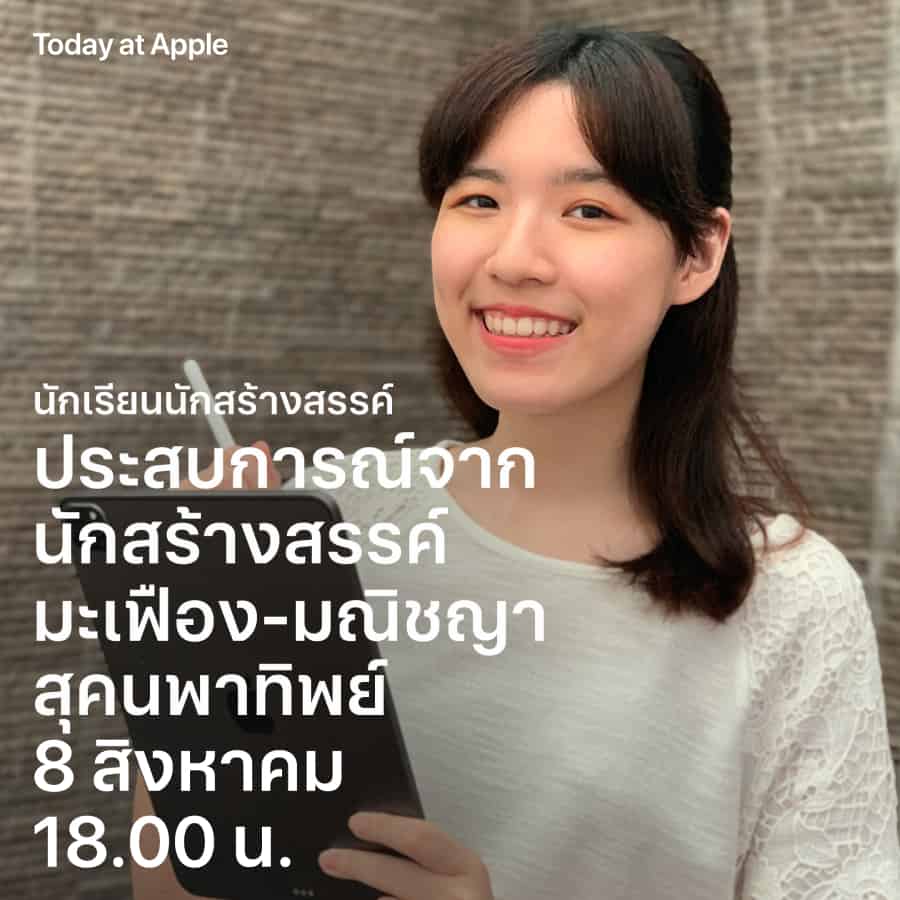 Today at Apple กลับมาอีกครั้งภายใต้แนวคิด Back to School กับซีรีส์นักเรียนนักสร้างสรรค์หรือ Students Create เปิดพื้นที่ให้นักเรียนนักศึกษารวมถึงผู้ที่สนใจได้มีโอกาสเรียนรู้และพัฒนาทักษะการใช้งานอุปกรณ์ในด้านต่างๆ รวมทั้งต่อยอดความคิดสร้างสรรค์ที่สามารถนำไปปรับใช้ในการเรียนการสอนยุคปัจจุบัน อาทิ เทคนิคการทำพรีเซนเทชั่นและแอนิเมชั่นบน Keynote การจดโน้ต การทำมายด์แมป ทักษะการเขียนโค้ด การถ่ายภาพ การตัดต่อวิดิโอบน iMovie และอื่นๆ อีกมากมาย โดยทุกคนสามารถเข้าร่วมได้ฟรี ไม่มีค่าใช้จ่าย