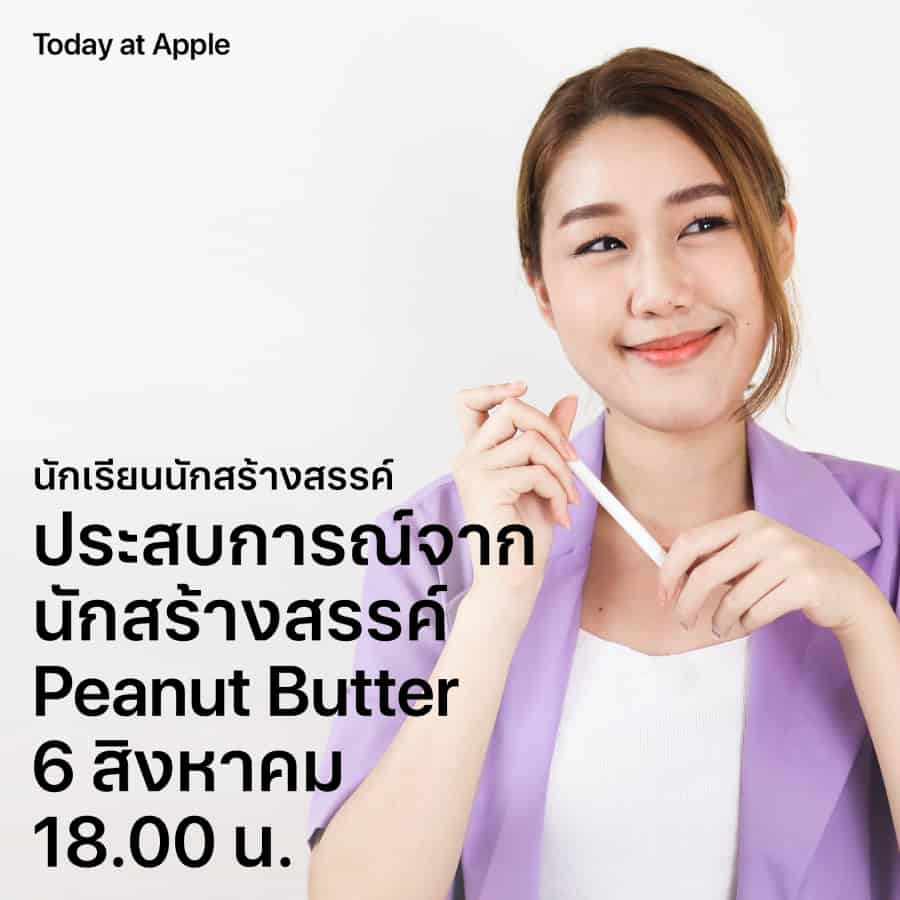 ทำคีย์โน้ตเก๋ๆกับ Peanut Butter วันศุกร์ที่ 6 สิงหาคม 2564เวลา 18:00-19:30 น.มาเรียนรู้วิธีสร้างสรรค์คีย์โน้ตให้โดนใจในเซสชั่นจากซีรีส์ “นักเรียนนักสร้างสรรค์” กับ Peanut Butter นักสร้างคอนเทนต์ ผู้จะมาแบ่งปันเคล็ดลับวิธีสร้างงานนำเสนอให้สวยสะดุดตาด้วยการใช้แอนิเมชั่น เอฟเฟ็กต์ Animoji และ Memoji ในแอป Keynote บน iPad Pro และ Apple Pencil จากนั้น ทุกคนจะได้ลองสร้างคีย์โน้ตแนะนำตัวเองโดยใช้เทคนิคที่ได้เรียนรู้ไปและอุปกรณ์ของร้าน