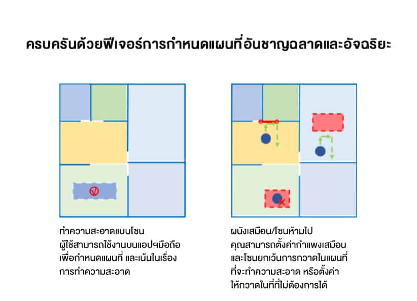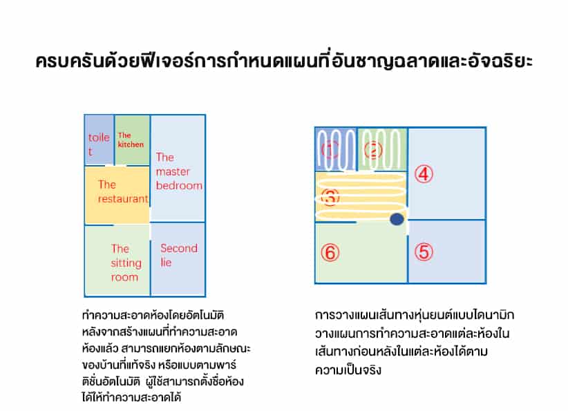 การทำงานผ่านแอปพลิเคชั่น Mi หลังจากกำหนดแผนเส้นทางทำความสะอาด สามารถแบ่งส่วนทำความสะอาดบ้านได้อย่างอัตโนมัติ ที่สามารถระบุห้องต่าง ๆ ที่จะทำความสะอาดได้ และด้วยการวางแผนทางเดินที่แม่นยำ เส้นทางการทำความสะอาดก่อน – หลัง ในแต่ละห้องได้ตามสภาพความเป็นจริง หรือแบบตามโซนพื้นที่ที่กำหนด หรือพื้นที่ต้องห้ามหรือส่วนที่ไม่อยากให้หุ่นยนต์เข้าไป และด้วยพลังดูดที่แรงและแปรงหมุนความเร็วสูงแบบรูปตัววี และแปรงจัดเก็บฝุ่นสุดล้ำสมัย 1000 rpm และระบบการจัดเก็บฝุ่นแบบป้องกันลมแรง ช่วยทำความสะอาดได้อย่างยอดเยี่ยม
