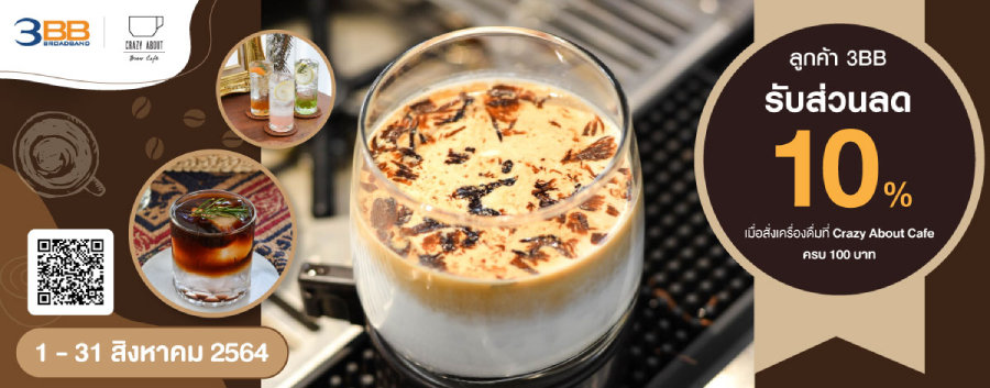 คาเฟ่เล็กๆน่ารักๆ ให้บริการชา กาแฟ และอาหารว่าง ตกแต่งสไตล์ rustic ที่มากับความเรียบง่ายแบบ minimal ใครที่ชอบความชิค ความฮิป แถมเครื่องดื่มและขนมอร่อย ตอบโจทย์คุณทุกอย่างแน่นอน ลูกค้า 3BB รับส่วนลด 10% เมื่อสั่งเครื่องดื่มที่ร้านครบ 100 บาท เมื่อโชว์สื่อโปรโมทที่หน้าร้าน ตั้งแต่วันนี้ถึง 31 สิงหาคม 2564