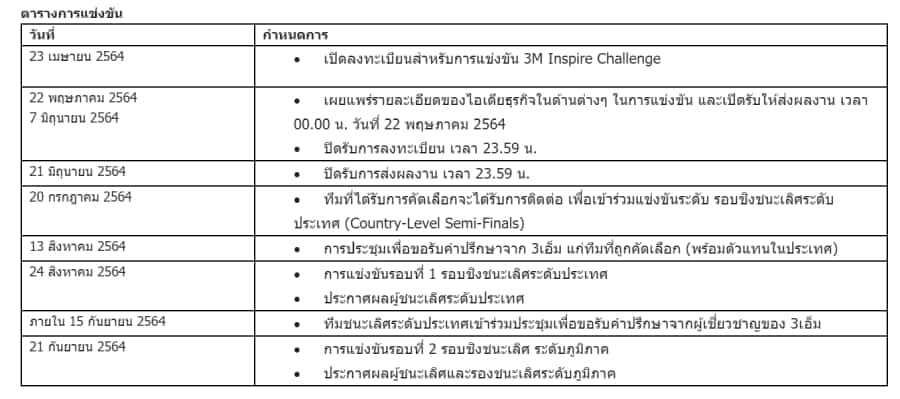 3M องค์กรด้านนวัตกรรมและวิทยาศาตร์ระดับโลก จัดการแข่งขัน 3M Inspire Challenge เพื่อค้นหาโชลูชันด้านเทคโนโลยี ความยั่งยืน และนวัตกรรมระดับภูมิภาค จากความคิดสร้างสรรค์ของนิสิตนักศึกษาที่ผ่านเข้ารอบชิงชนะเลิศระดับประเทศ จำนวนทั้งสิ้น 10 คน จาก 3 ทีม เพื่อเป็นตัวแทนประเทศไทยไปแข่งขันรอบสุดท้ายในระดับภูมิภาค