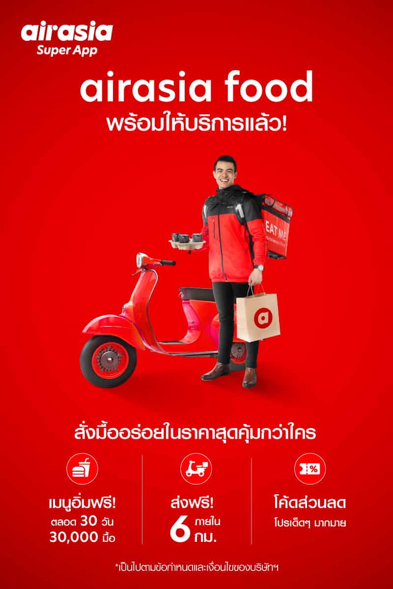 “แอร์เอเชีย ดิจิทัล” เปิดตัวบริการล่าสุด airasia food ในประเทศไทยเพื่อยกระดับ airasia super app ให้เป็นซูเปอร์แอพชั้นนำบริการ airasia food เปิดตัวพร้อมแคมเปญฟรี 30,000 มื้อตลอดระยะเวลา 30 วัน ส่วนลดอื่น ๆ พร้อมให้บริการลูกค้าในกรุงเทพฯ 4 พื้นที่ ได้แก่ ดินแดง จตุจักร ลาดพร้าว ห้วยขวาง ตั้งเป้าขยายพื้นที่ให้บริการครอบคลุมทั่วกรุงเทพฯ เร็ว ๆ นี้