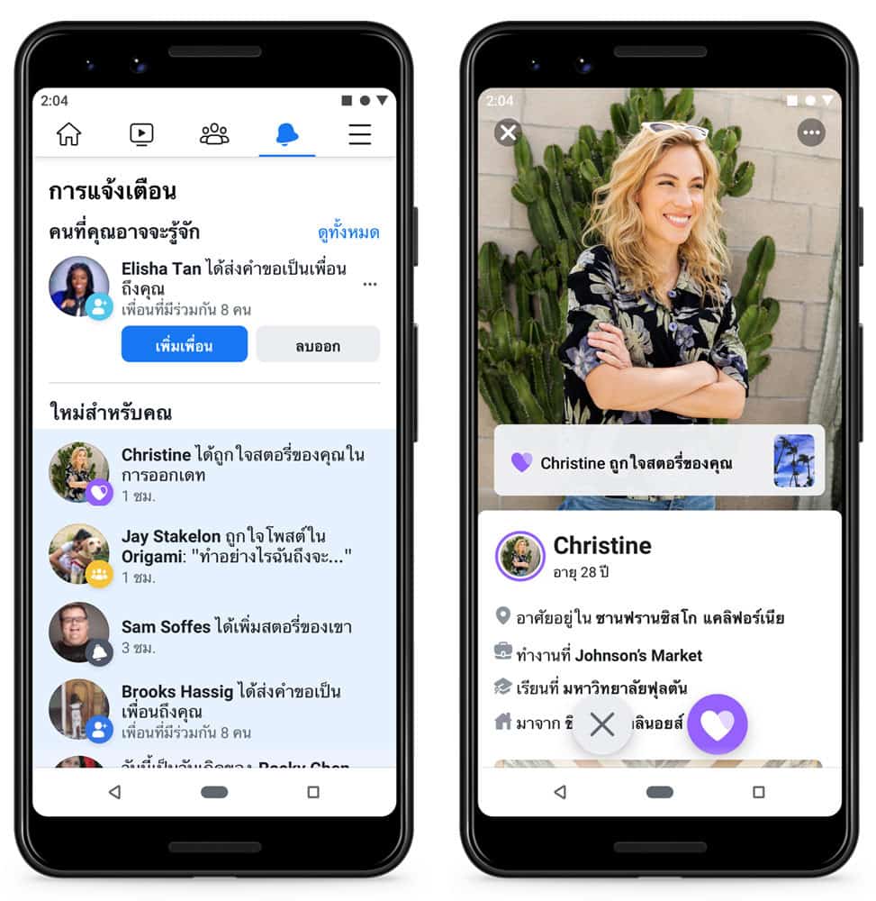 นอกจากนี้ยังมีฟีเจอร์ใหม่อีก 2 อย่างใน Dating คือ Match Anywhere ที่จะช่วยจับคู่คุณกับคนที่อาจทำงาน, คนที่อาศัยอยู่ในพื้นที่ใกล้เคียงหรือแม้แต่คนที่คุณเจอบ่อยๆ ในระหว่างการเดินทางได้ง่ายขึ้น