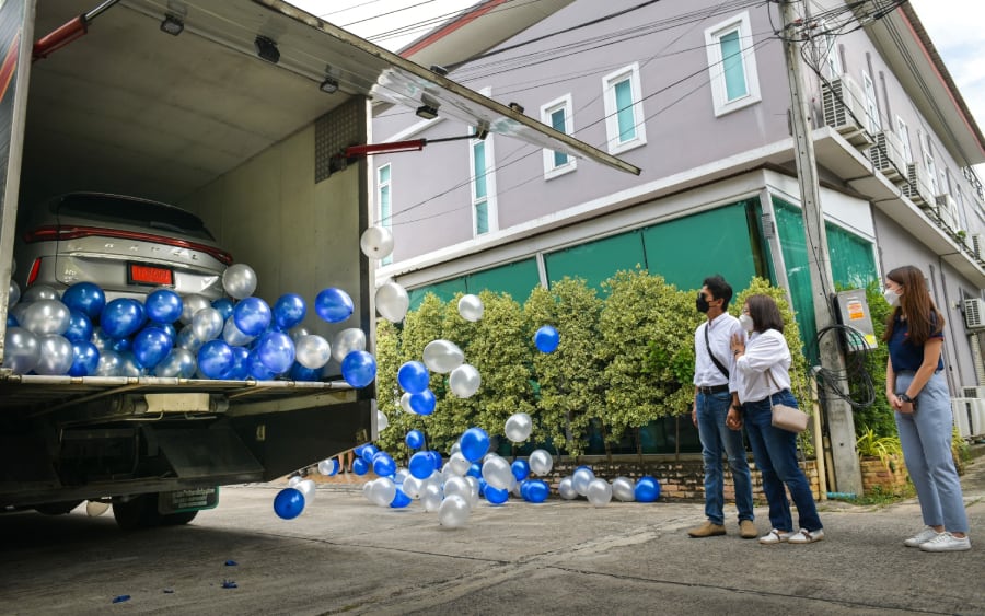 ล่าสุด เกรท วอลล์ มอเตอร์ ได้ส่งมอบรถแบบ Door-to-Door Delivery Service รูปแบบพรีเมียม ณ ร้าน RAFFINE CAFÉ RESTAURANT & THE SHE’S HOUSE จังหวัดชลบุรี เพื่อเพิ่มประสบการณ์สุดเอกซ์คลูซีพให้กับลูกค้า ที่ต้องการมอบรถยนต์ All New HAVAL H6 Hybrid SUV ให้เป็นของขวัญสุดพิเศษให้กับคู่รัก เนื่องในโอกาสฉลองครบรอบการแต่งงาน โดยทีมงานได้ทำความสะอาดและตรวจเช็คสภาพรถยนต์อย่างเคร่งครัด เพื่อให้มั่นใจได้ว่ารถทุกคันอยู่ในสภาพสมบูรณ์พร้อมส่งมอบ และเป็นไปตามนโยบายด้านความปลอดภัยในช่วงสถานการณ์การแพร่ระบาดของโรคโควิด-19 ก่อนนำขึ้นรถสไลด์ ในส่วนของตัวรถสไลด์นั้น ตกแต่งด้วยภาพกล่องของขวัญขนาดใหญ่สวยงาม ภายในบรรจุไปด้วยลูกโป่งกว่า 400 ลูก พร้อมเค้กฉลองครบรอบวันแต่งงานและช่อดอกไม้แสดงความยินดี จาก เกรท วอลล์ มอเตอร์ ช่วยสร้างบรรยากาศอันอบอุ่นและเปี่ยมไปด้วยภาพความประทับใจที่ตอบโจทย์ความต้องการของลูกค้าในการส่งมอบรถครั้งนี้ได้เป็นอย่างดี