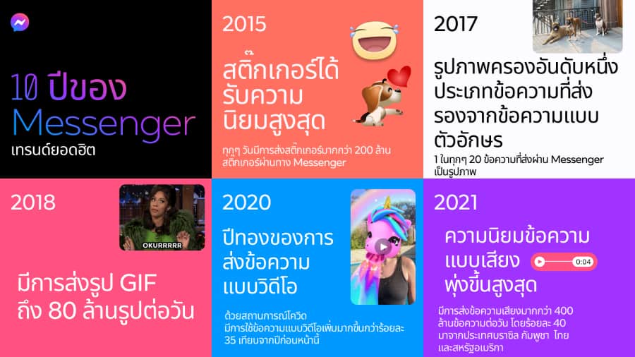 Messenger ฉลองวันเกิดครบรอบ 10 ปี ประเทศไทยเป็นหนึ่งในประเทศที่ใช้งานฟีเจอร์ส่งข้อความเสียงสูงสุดเป็นอันดับต้นๆ ของโลก พร้อมวางเป้าหมายสำหรับทศวรรษต่อไปไทยขึ้นแท่น ผู้นำกลุ่มแรกที่เปิดรับเทคโนโลยีส่งข้อความเสียง