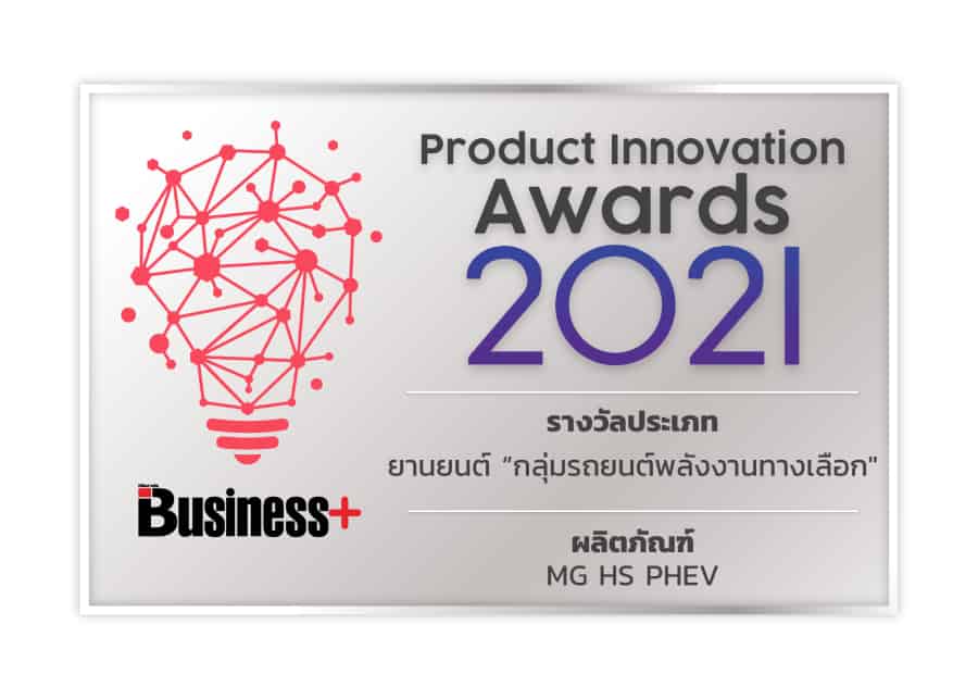 MG ตอกย้ำความเป็นผู้นำด้านนวัตกรรมและเทคโนโลยีที่สามารถตอบสนองความต้องการและยกระดับคุณภาพชีวิตของลูกค้าด้วยรางวัลสุดยอดนวัตกรรมสินค้าและบริการแห่งปี พ.ศ. 2564 (Product Innovation Awards) ประเภทยานยนต์ ในกลุ่มรถยนต์พลังงานทางเลือก จากรุ่น MG HS PHEV