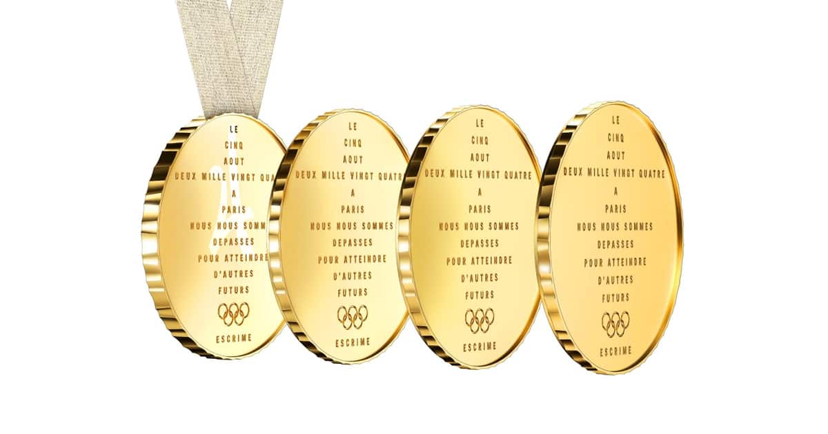 นั่นคือ เหรียญรางวัลของกีฬาโอลิมปิก Paris 2024 ที่ออกแบบโดย Philippe Starck ดีไซเนอร์ชื่อดัง มาพร้อมกับคอนเซ็ปต์ “Made for sharing” โดยออกแบบให้เหรียญรางวัลเป็นโลหะซ้อนกัน 4 ชั้น จาก 1 เหรียญสามารถแยกออกได้เป็น 4 เหรียญ