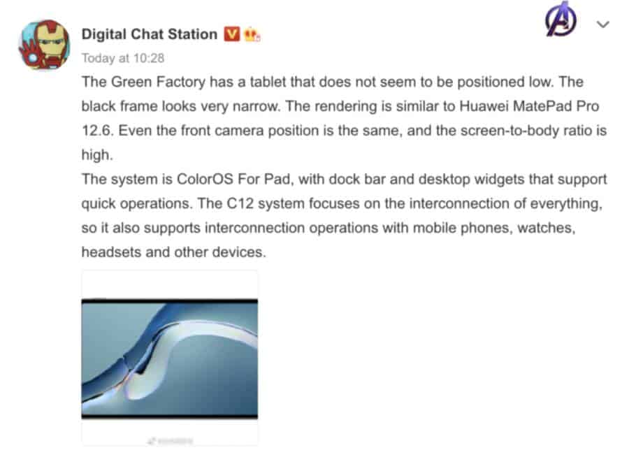 ตามรายงานของ Digital Chat Station ที่ได้ออกมาเผยแพร่ภาพเรนเดอร์ ซึ่งเขาอ้างว่าเป็นแท็บเล็ตเครื่องแรกของแบรนด์ OPPO โดยแบรนด์จีนจะเปิดตัวแท็บเล็ตในช่วงราคากลาง ๆ ไปจนถึงราคาสูง