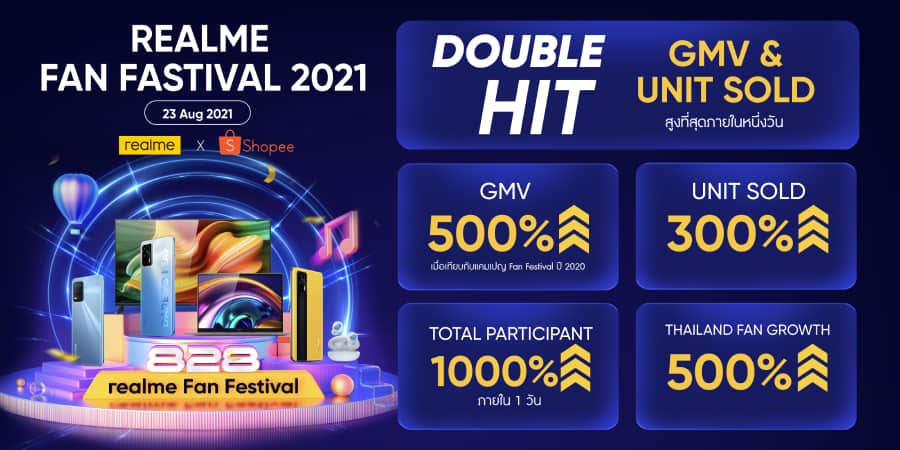 สำหรับ realme Fan Festival 2021 ในประเทศไทย ทาง realme ร่วมกับ Shopee จัดแคมเปญสุดพิเศษ ‘realme Fan Fest X Super Brand Day’ มอบส่วนลดและสิทธิพิเศษสุดคุ้มค่าให้แก่แฟนๆ ชาวไทย โดยสามารถทำยอดขายโตกว่า 500% และยอดจำหน่ายโตกว่า 300% รวมทั้งมีฐานแฟนคลับสูงขึ้นกว่า 500%