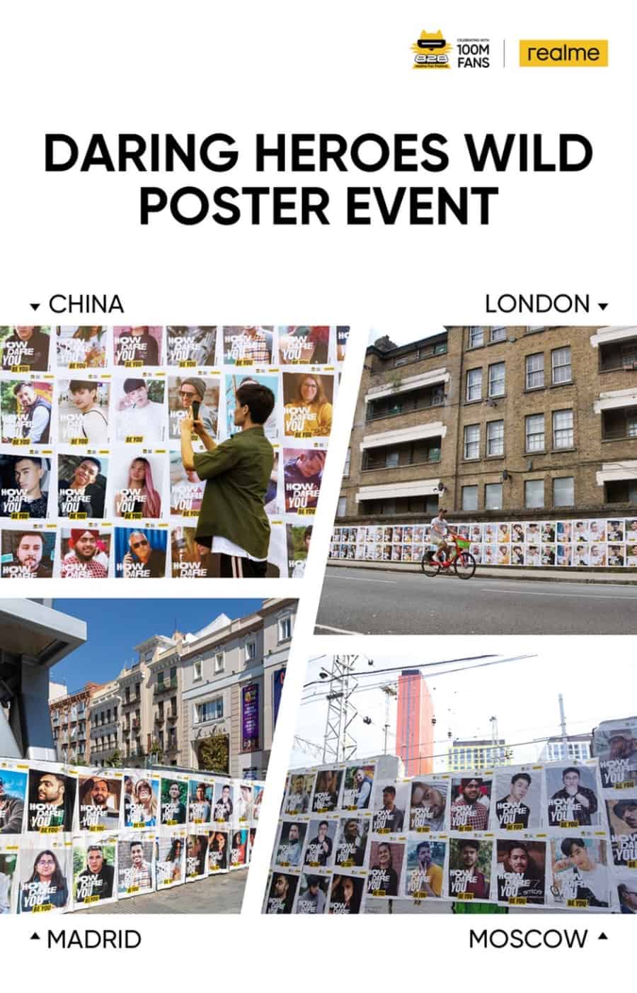 สำหรับงาน realme Fan Festival 2021 จัดขึ้นในแคมเปญ ‘Daring Heroes Wild Poster Event’ โดยแฟนๆ ทั่วโลกได้ส่งภาพถ่ายพร้อมบอกเล่าเรื่องราวที่แสดงให้เห็นถึงความกล้าในแบบฉบับของตัวเอง ในหัวข้อ: ‘How Dare You Be You’ ซึ่งเป็นการสนับสนุนให้ทุกคนดำเนินชีวิตตามความคิดของตนเอง แม้จะต้องเผชิญกับการตัดสินใจที่ยากลำบากและปัญหาอุปสรรคต่างๆ ก็ตาม โดยภาพถ่ายที่แฟนๆ ส่งมานั้น ได้นำไปจัดแสดงใจกลางเมืองสำคัญของลอนดอน มอสโก มาดริด และเซินเจิ้น เพื่อส่งเสริมให้แฟนๆ ทุกคนเปลี่ยนเสียงภายนอกที่เป็นลบให้กลายเป็นพลังบวก