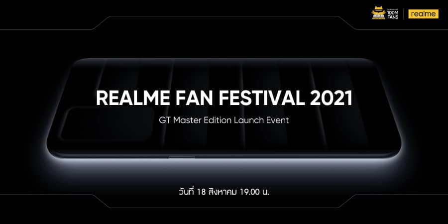 realme ตามที่ได้มีการส่งมอบสมาร์ทโฟนกว่า 100 ล้านเครื่องอย่างเป็นทางการในระยะเวลาเพียง 37 เดือน ซึ่งถือว่าเป็นแบรนด์สมาร์ทโฟนที่มียอดขายทะลุ100 ล้านเครื่องได้เร็วที่สุดในโลก เตรียมเปิดตัวสมาร์ทโฟนรุ่นใหม่ล่าสุด GT Master Series พร้อมทั้งเปิดตัวสินค้าหมวดหมู่ใหม่ ในวันที่ 18 สิงหาคมนี้