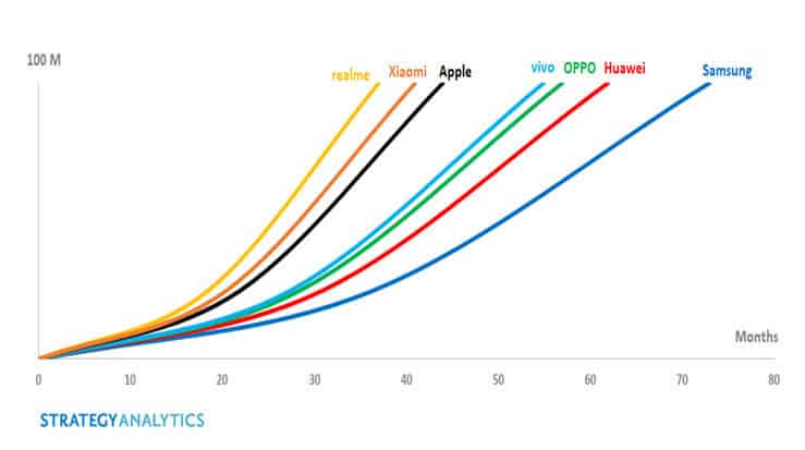 realme ประสบความสำเร็จในเวลาเพียง 3 ปี หลังก่อตั้งบริษัทฯ ขึ้นแท่นผู้นำแบรนด์สมาร์ทโฟนที่เติบโตในไตรมาสที่ 2 ด้วยอัตราการเติบโต 149% มียอดขาย 100 ล้านเครื่องทั่วโลกได้เร็วที่สุด