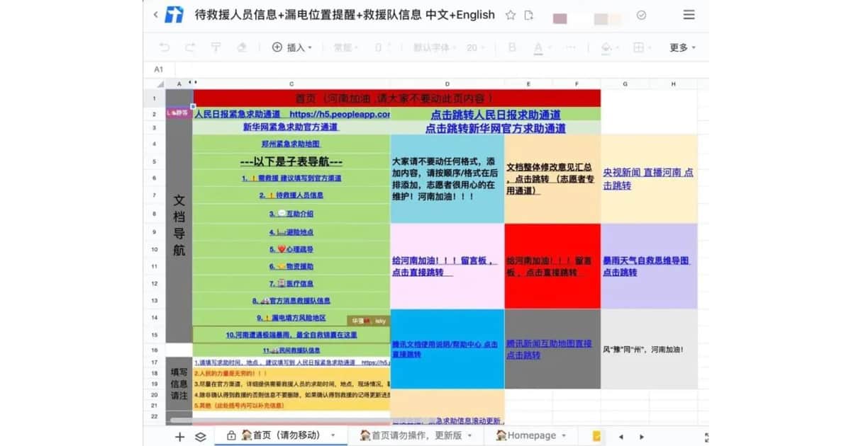 แต่ทันทีที่ไฟล์ Excel ดังกล่าวถูกโพสต์ขึ้นทางออนไลน์แบบเรียลไทม์ในเวลา 20:57 ผ่านทาง Tencent Docs ที่เป็นแพลตฟอร์มเอกสารออนไลน์ฟรีที่อนุญาตให้ทำงานบนไฟล์ร่วมกันได้หลายคน (แบบเดียวกับ Google Docs) มันกลายเป็นเครื่องมือที่ช่วยให้หน่วยกู้ภัยทราบถึงตำแหน่งและสามารถค้นหาผู้ที่ติดอยู่ตามสถานที่ต่างๆ ได้อย่างมีประสิทธิภาพ