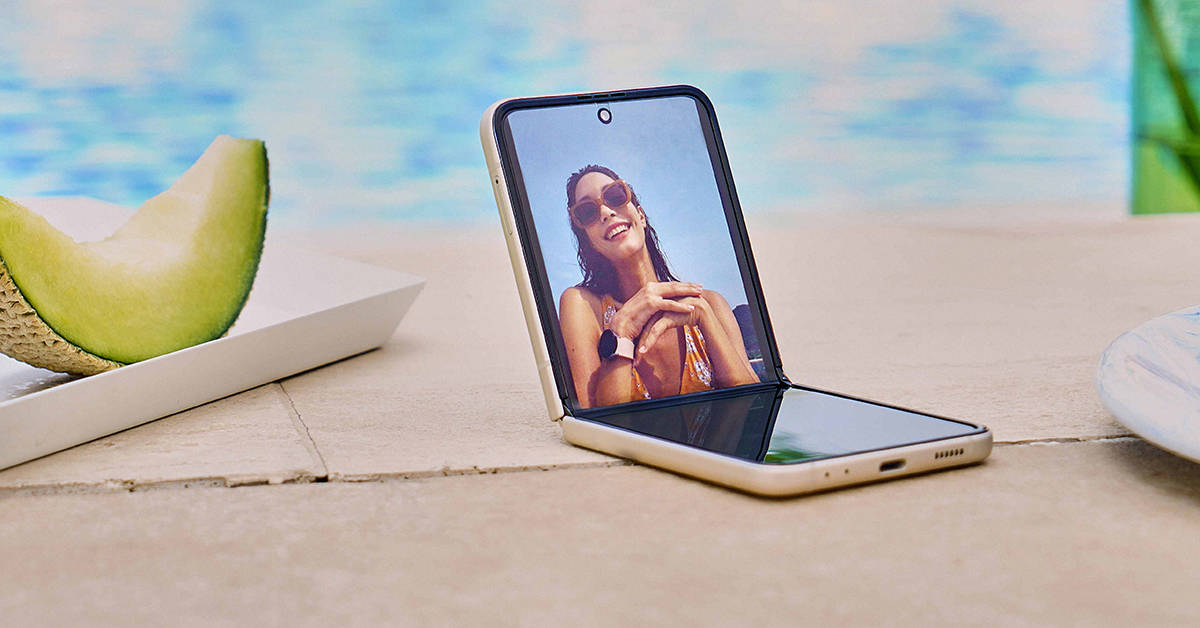 Samsung Galaxy Z Flip3 5G สมาร์ทโฟนหน้าจอดีไซน์แบบฝาพับที่สวยงามไม่เหมือนใคร ปรับโฉมดีไซน์ให้มีความชิค กับจอด้านนอกโฉมใหม่ขนาดใหญ่กว่าเดิม ทำให้ดูการแจ้งเตือนหรือข้อความต่างๆ ได้โดยไม่ต้องกางสมาร์ทโฟนออก รวมถึงเอาใจสายถ่ายภาพและเหล่าโซเชียลเลิฟเวอร์ด้วยฟีเจอร์กล้องสุดล้ำอย่างการถ่ายเซลฟี่แบบแฮนด์ฟรีผ่าน Flex mode หรือการสแนปภาพหรือถ่ายวิดีโออย่างรวดเร็วแม้อยู่ในโหมดพับด้วยฟีเจอร์ Quick Shot อัตรารีเฟรชเรท 120Hz ที่สามารถปรับได้โดยอัตโนมัติตามลักษณะการใช้งาน